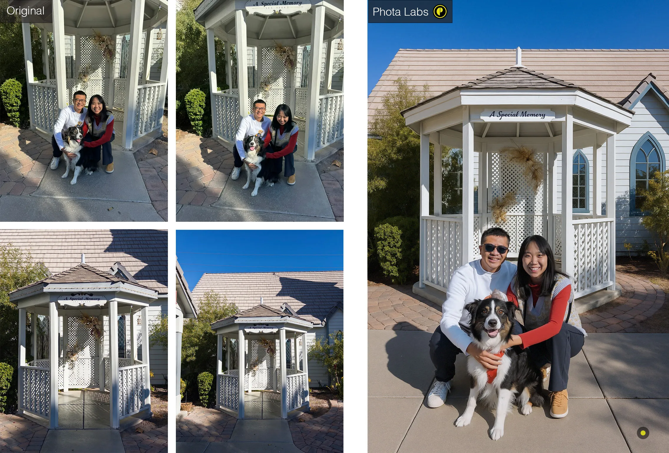 There are moments where nothing is set up, and everything but the feeling goes wrong: an awkward angle, bad lighting, blurry faces, distracting window reflection, etc. Any existing editing tool/model may have declared this photo as "unfixable".