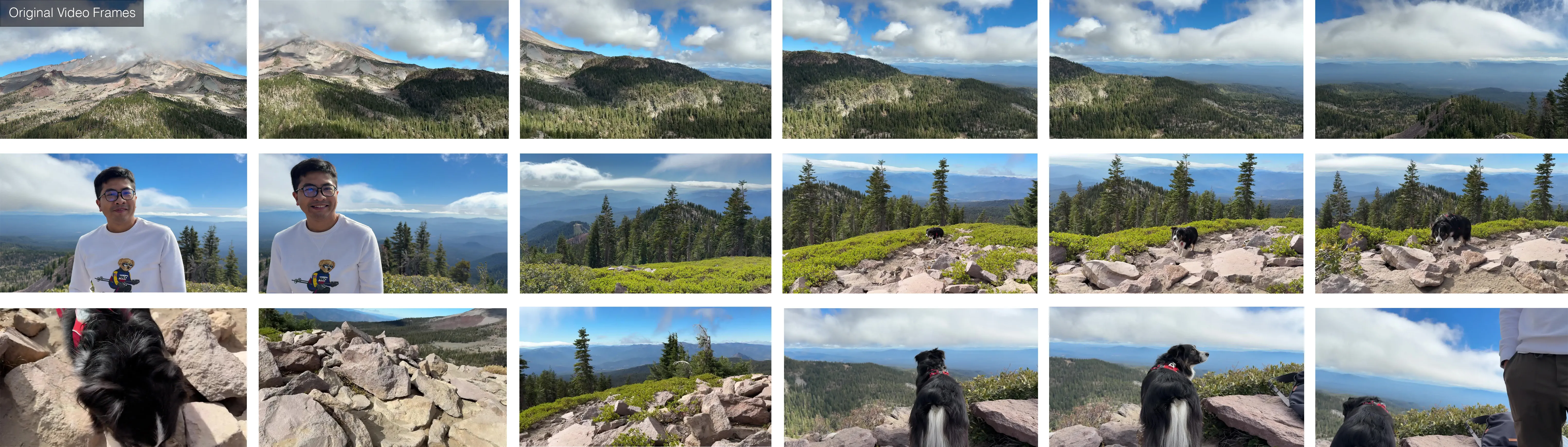 A hiking video, for example, can have multiple "highlights": the group reaching the summit, or the sweeping view from the top. Across a continuous stream of time and countless camera angles, the question becomes: which single moment best represents the experience?