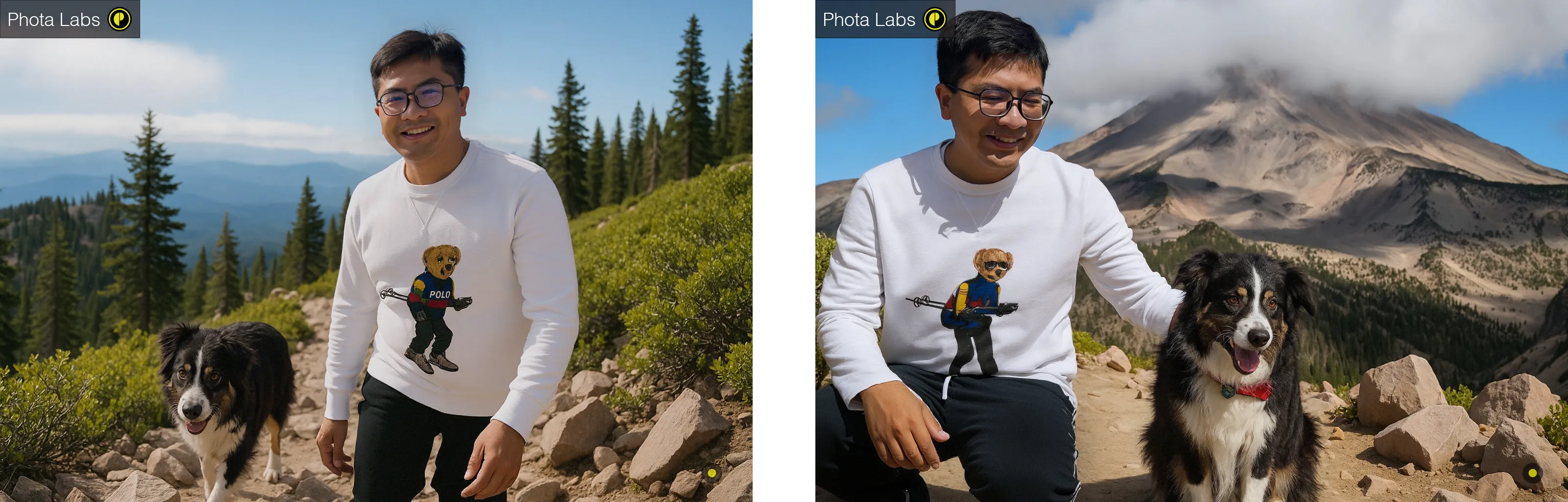 But once the system already understands the event context, expressing that preference becomes simple and intuitive. When the user tells the system, "prefer the background with the mountain", that single cue guides it to select the right context from the original frames that matches their intent. Doesn't that sound like how you would communicate with a photographer in real life?